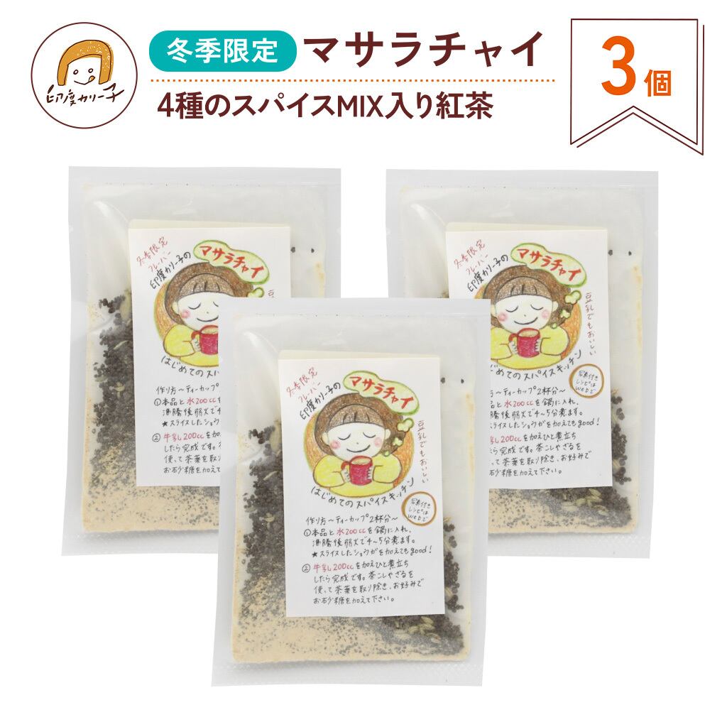 【冬季限定3個入り】マサラチャイ 4種のスパイスMIX入り紅茶 1~2杯分 3袋セット 冬季限定フレーバー