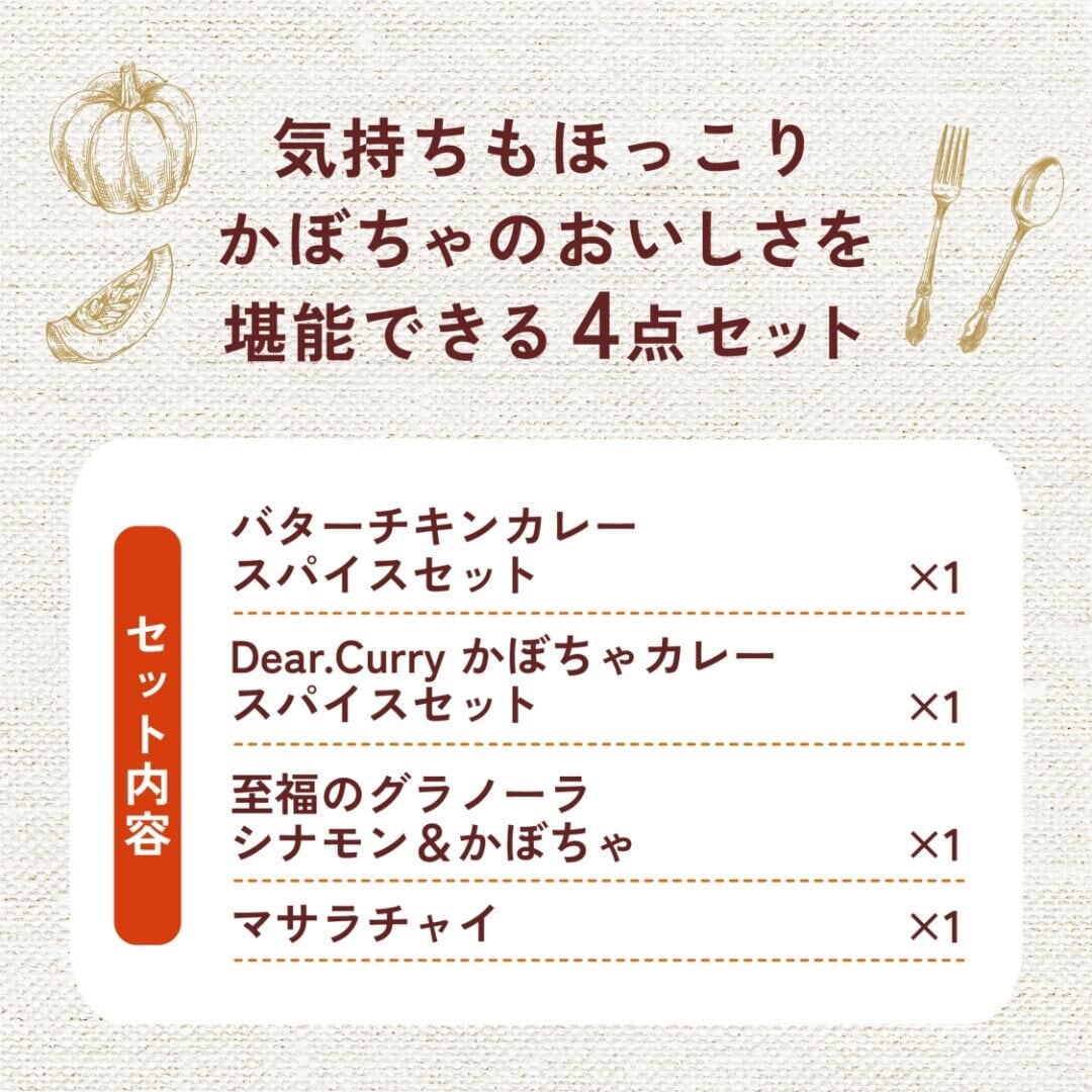 かぼちゃを楽しめるスパイスカレー&グラノーラ4点セットです