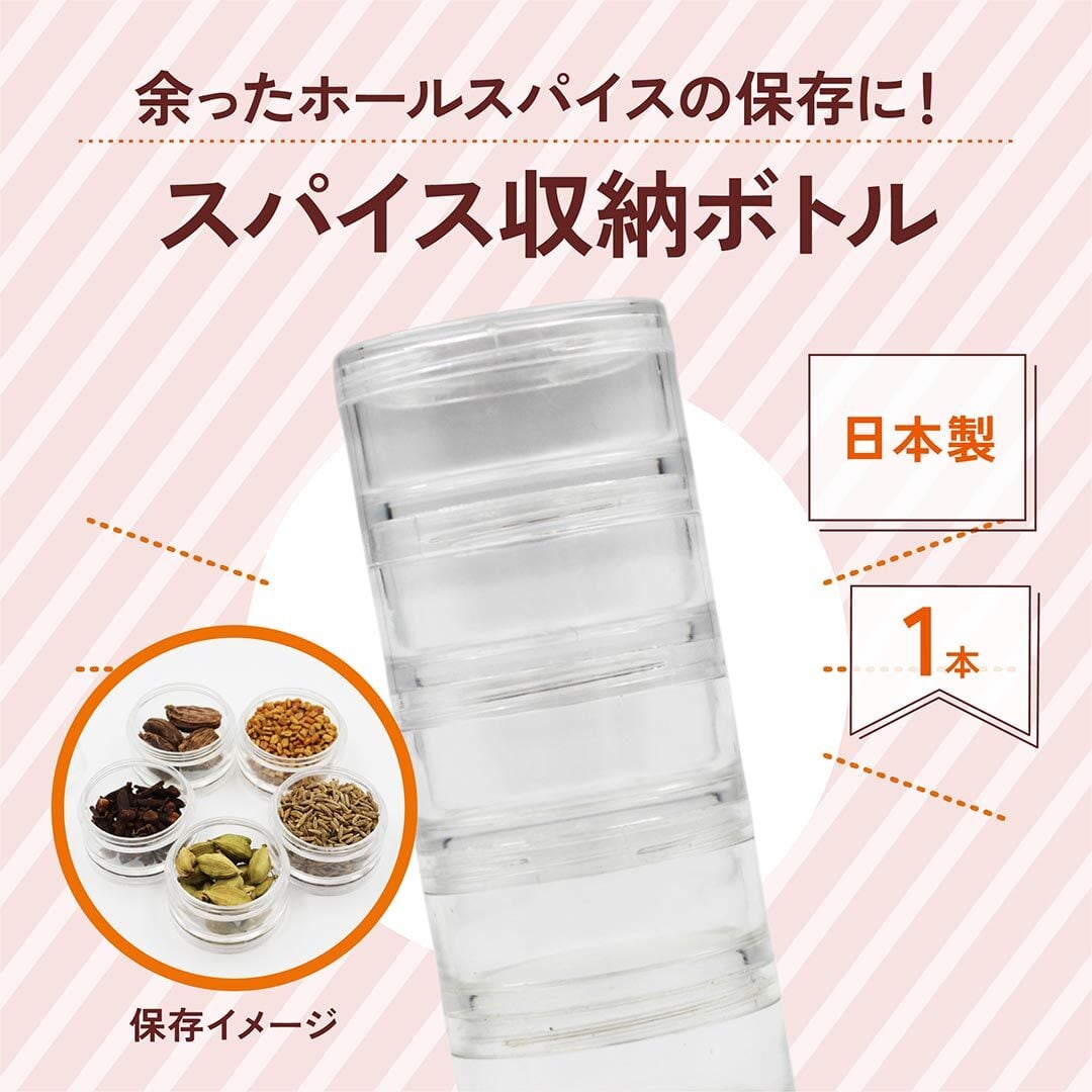 余ったホールスパイスを省スペースに保存できます。