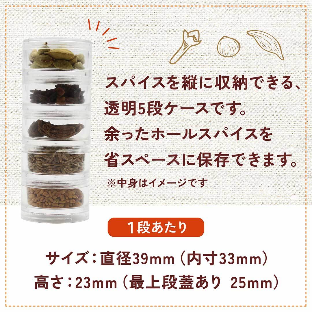 スパイスを縦に収納できる、透明5段ケースです。