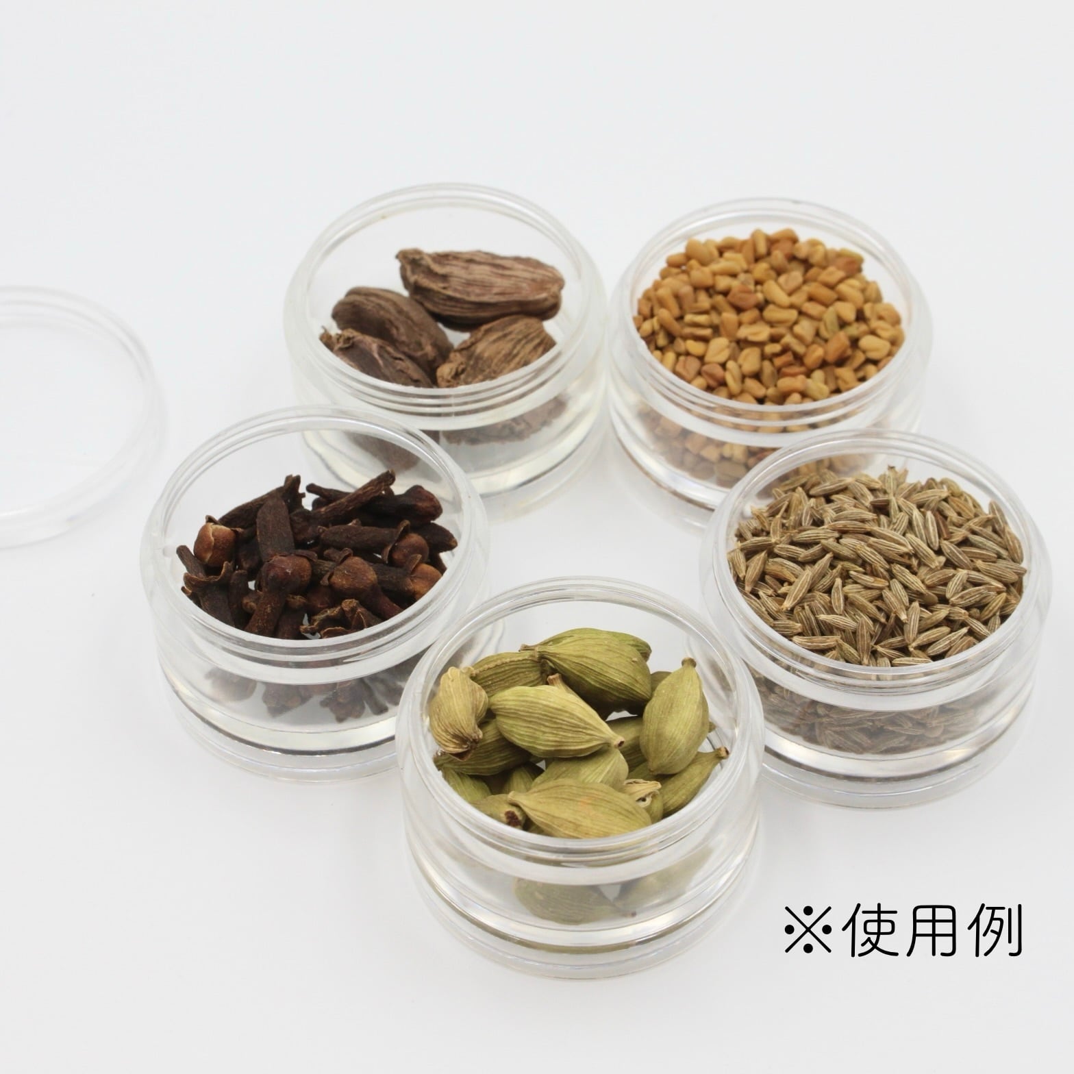 ・スパイス以外の文具、工具、クリップ・ネジ類、アクセサリー、小物、石や貝などの保存に。