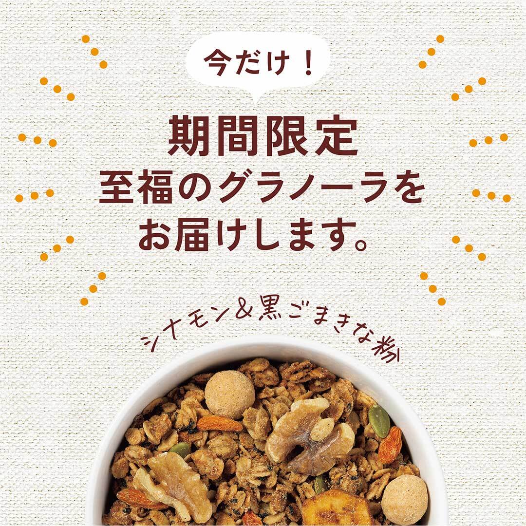 【期間限定】至福のグラノーラ シナモン&黒ごまきなこ 毎週60個限定・焼きたてお届け便 1パック180g入(4食分)