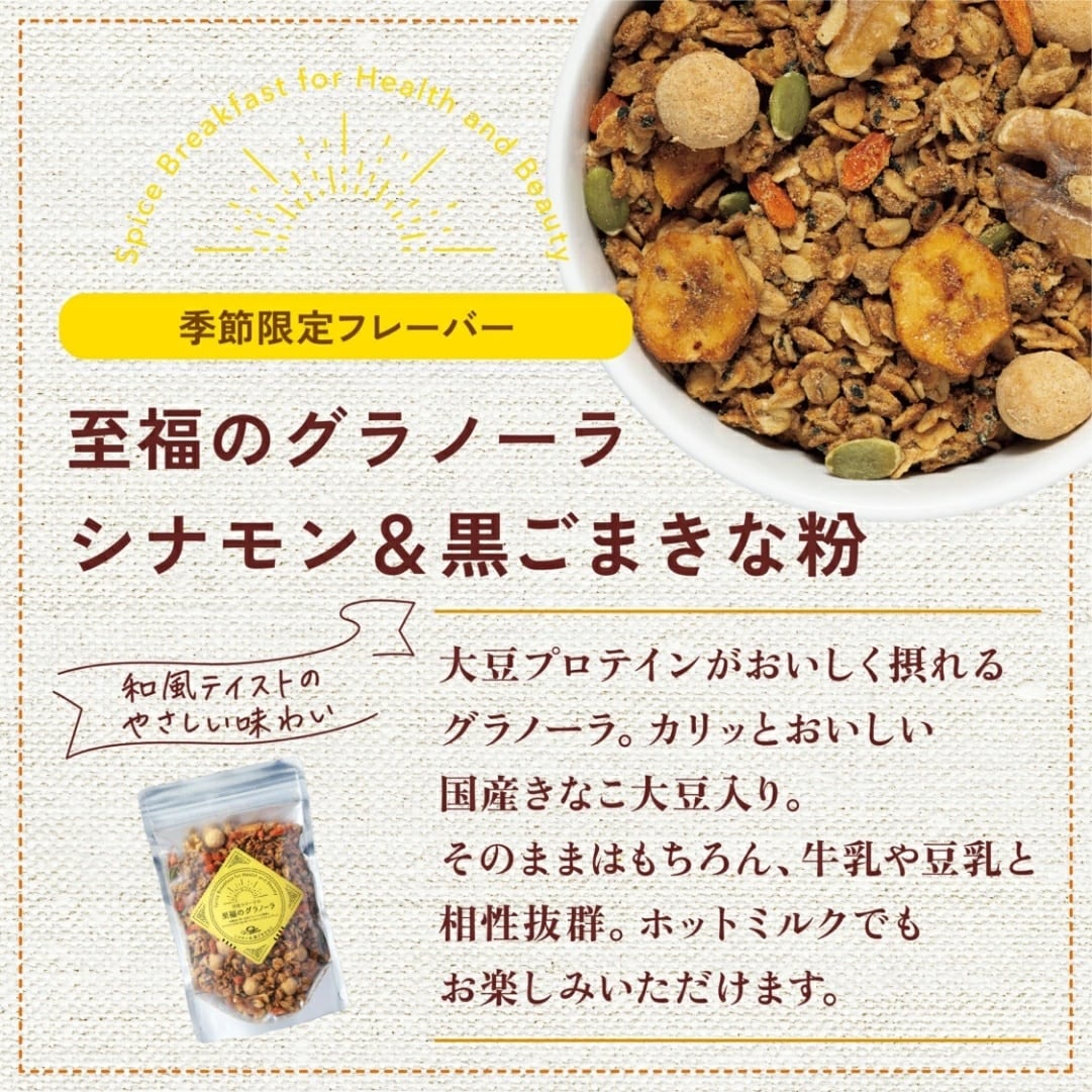 至福のグラノーラの「シナモン&黒ごまきなこ」味です