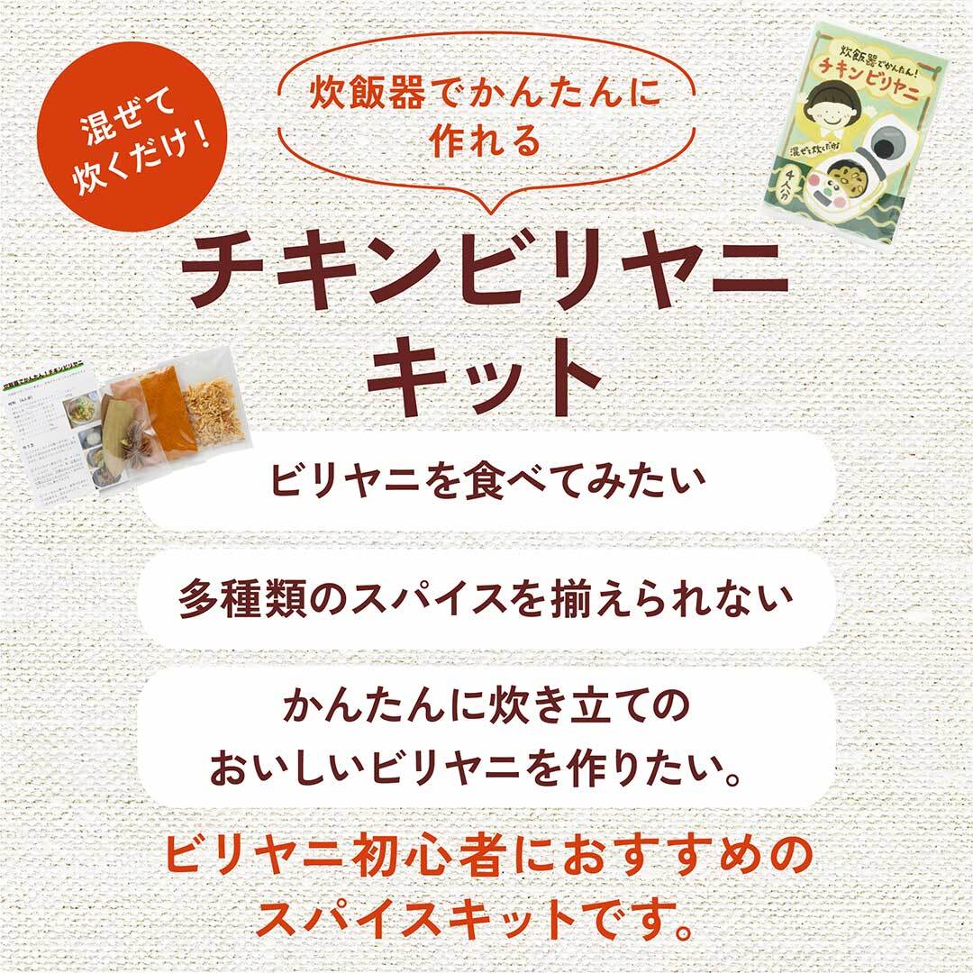 新商品「炊飯器でかんたんに作れるチキンビリヤニキット」です。